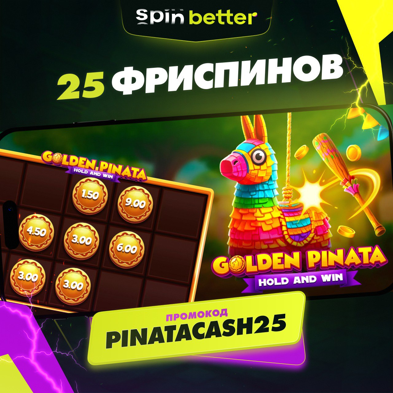 Промокод на 25 фриспинов в Golden Pinata | Spinbetter